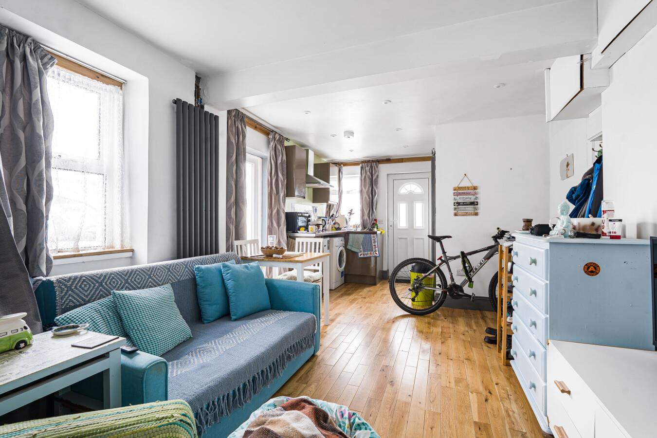 Ground Floor Studio Flat Rear - Double glazed window to the rear. Range of base and wall units. Sink and drainer with mixer tap. Patio opening doors to the side elevation. Two vertical radiators. Double glazed window to the side. Power points. Wooden effect flooring. Logic Max Boiler. Sliding doors to BATHROOM - low level WC with top flush. Wall mounted wash hand basin. Wet room style shower. Ceiling mounted light fitting. Obscure window to the rear.