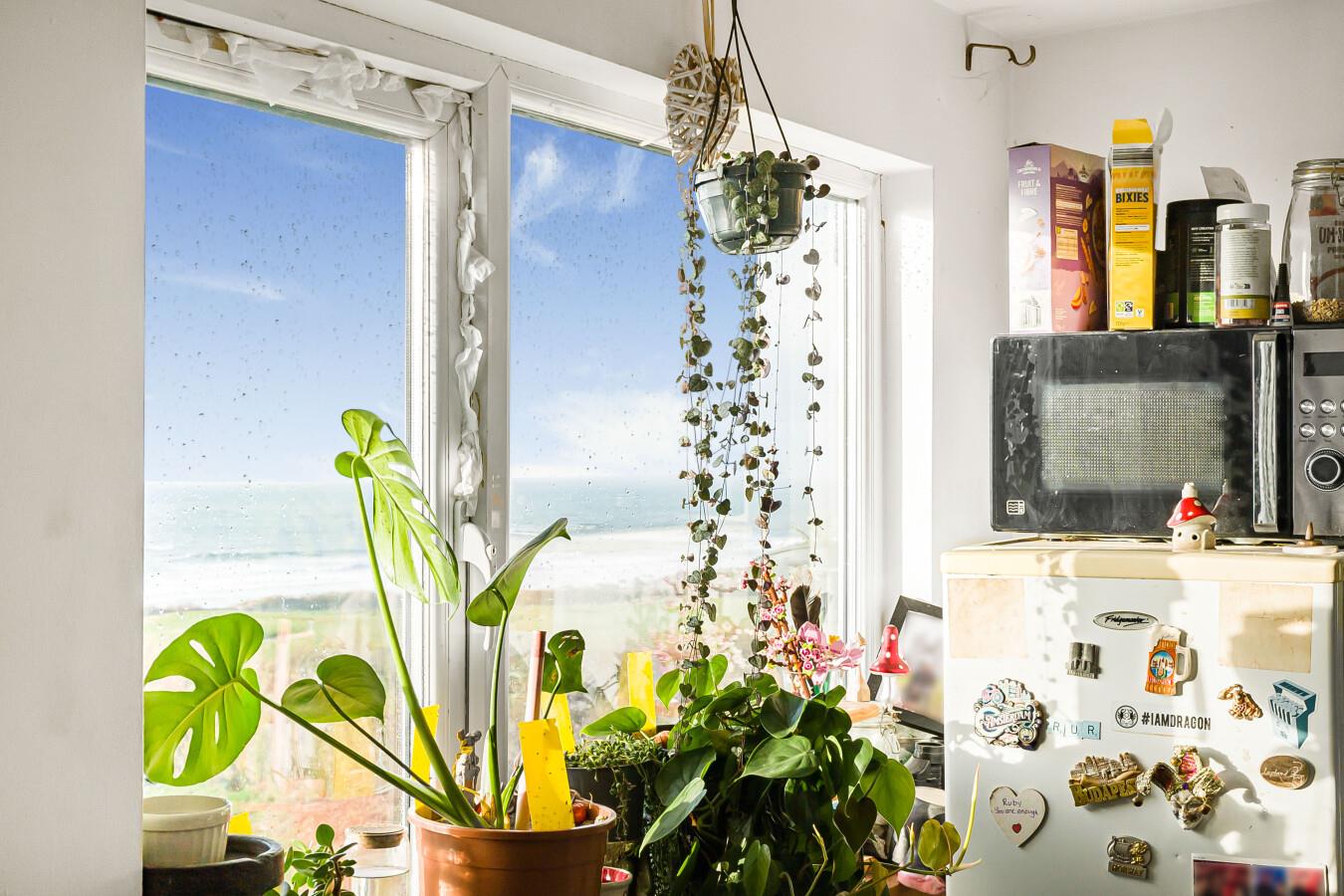 Communal Kitchen - Double glazed window to the front with stunning views over Newquay Golf Course and Fistral Beach beyond. Range of base, wall and drawer units. Stainless steel sink and drainer. Ceiling mounted light fitting. Radiator. Laminate flooring.