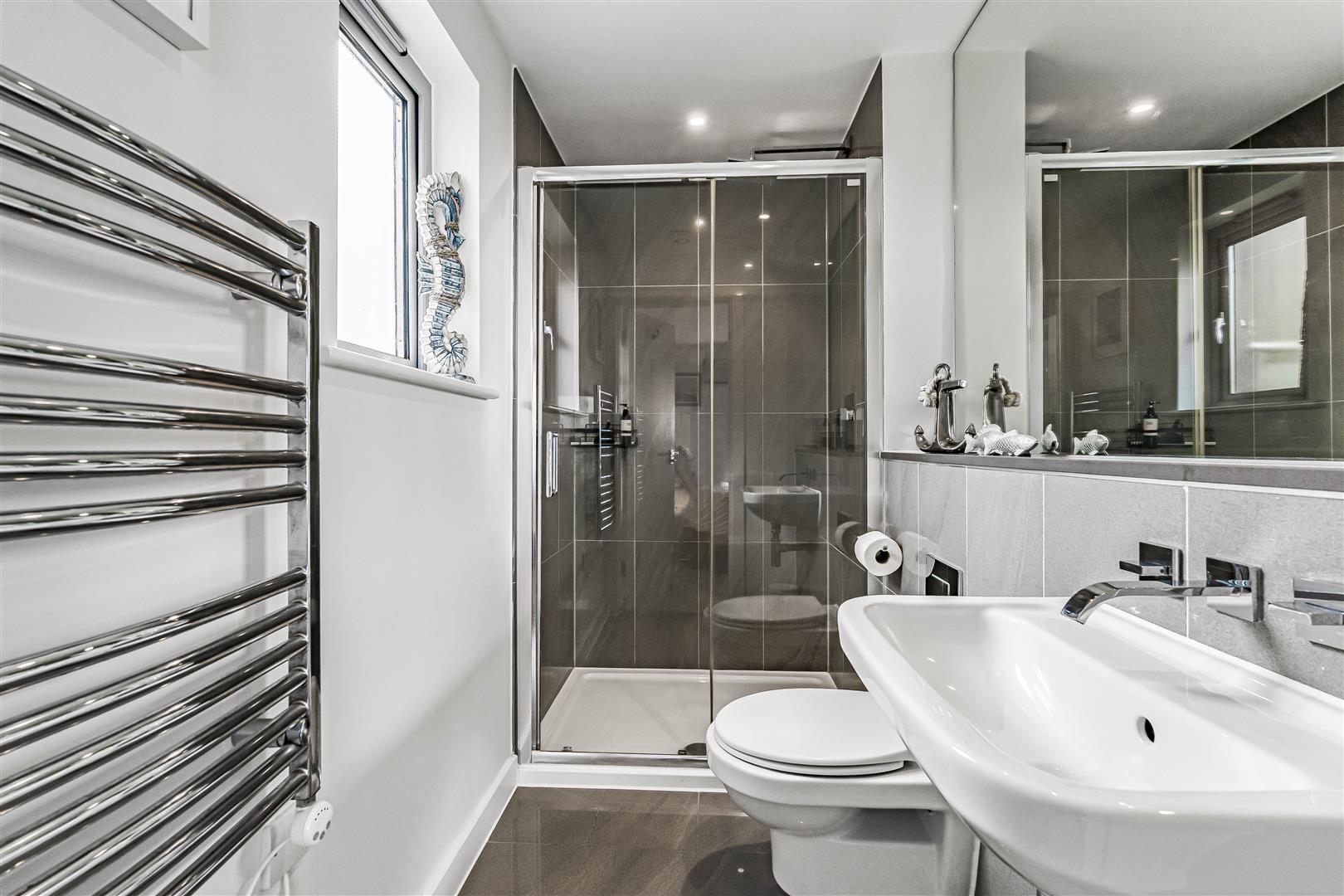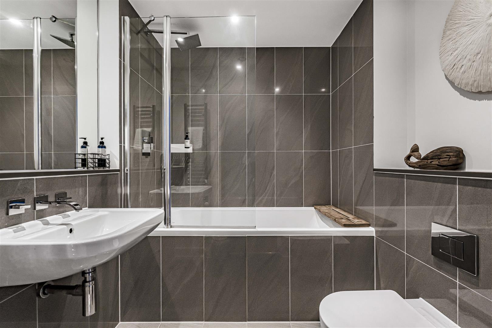 The principal bedroom benefits from a modern en-suite shower room and direct access to the private courtyard. A second bedroom and a well-appointed family bathroom complete the internal accommodation.