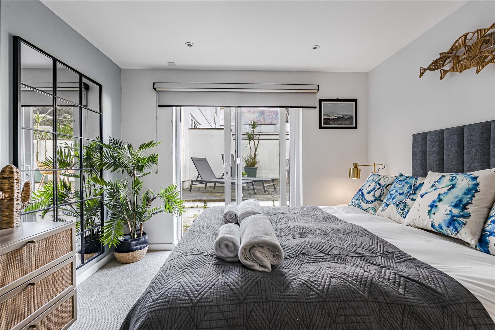 Externally - Apartment Three benefits from a lockable surf store and allocated parking. Uniquely within this boutique development this apartment also offers a secluded courtyard, accessed from the principal bedroom, set up currently as a low-maintenance and private outdoor space.