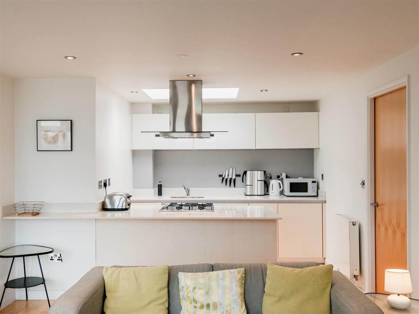 This stunning penthouse apartment on Headland Road features a spacious open plan kitchen/lounge/diner with views over Newquay Bay towards Trevose Head.