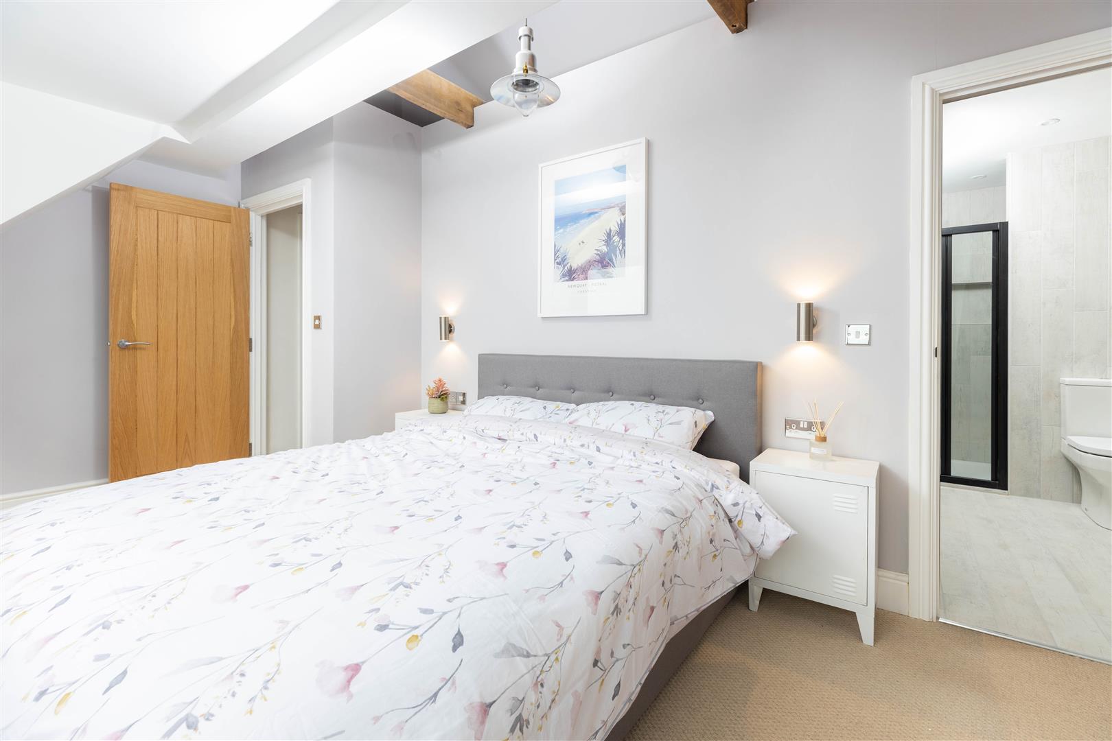 Bedroom Two - uPVC double glazed sash window. Ceiling height door accessed storage area. King sized ottaman style bed. Efficient wall mounted electric radiator