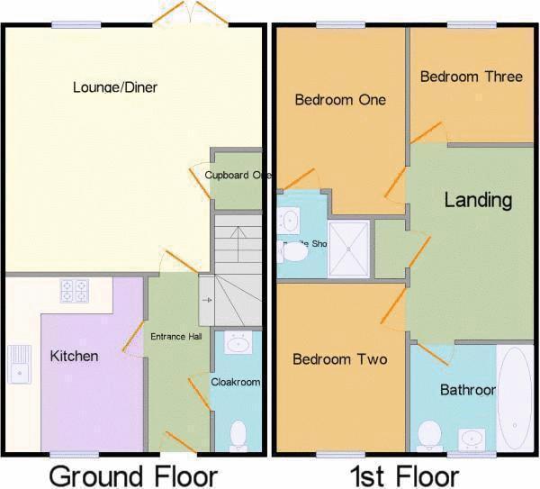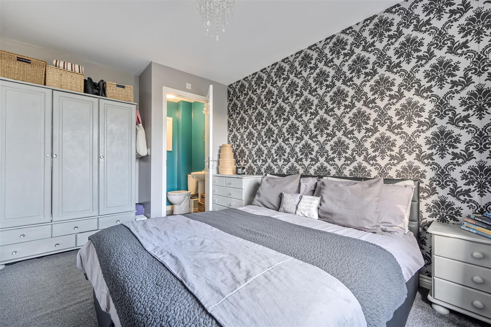 En Suite - Shower cubical with bi folding door with electric overhead shower. Close coupled WC with dual flush. Pedestal wash hand basin. Tiled splash back. Radiator. Extractor.