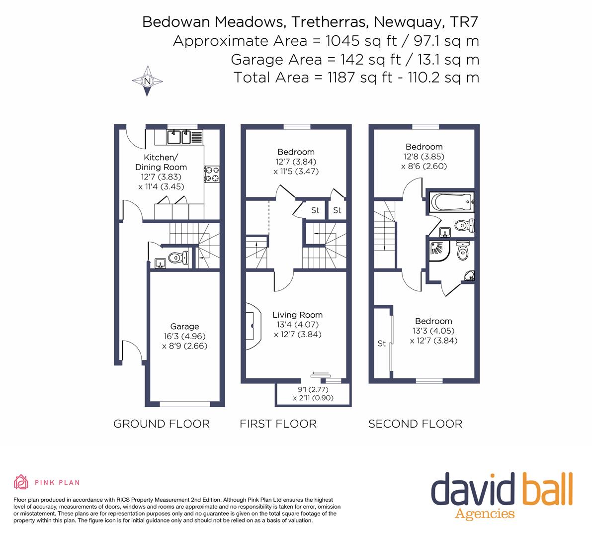 The second floor hosts two further double bedrooms, including a superb principal bedroom with wardrobes, alongside a stylish family bathroom with a bath and shower over.