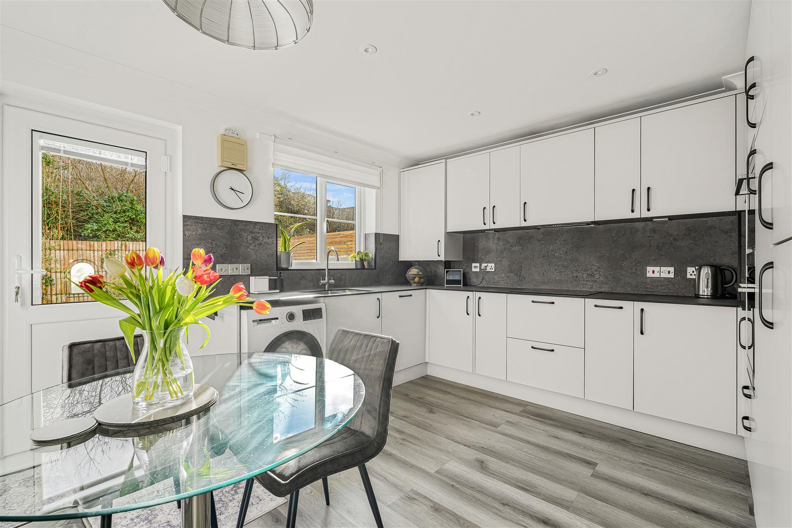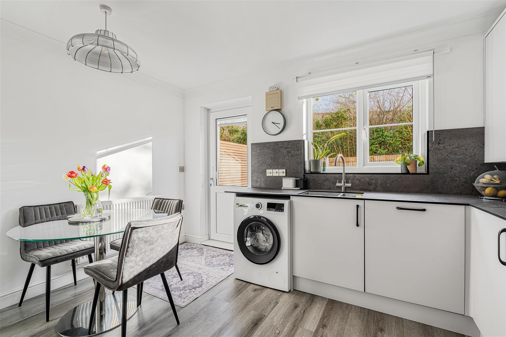 PROPERTY - Step into this spacious and welcoming family home, thoughtfully arranged over three floors. The entrance hallway leads to a convenient cloakroom and a garage, offering a versatile space. To the rear, the bright kitchen diner benefits from a sunny southerly aspect and doors opening onto the garden, creating the perfect setting for both everyday living and entertaining. The kitchen is well-equipped with a range of units and integrated appliances, along with space for a family dining table.
