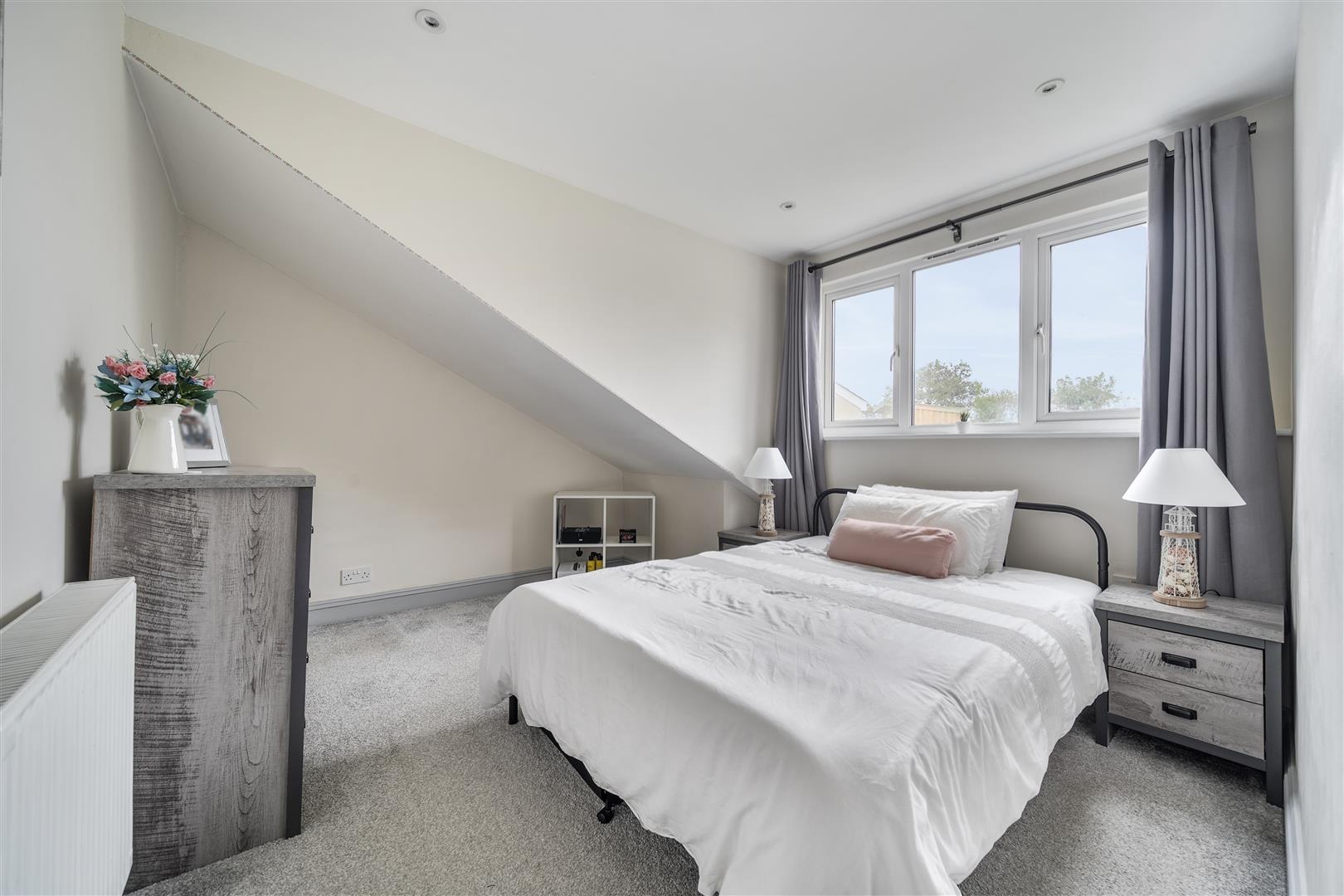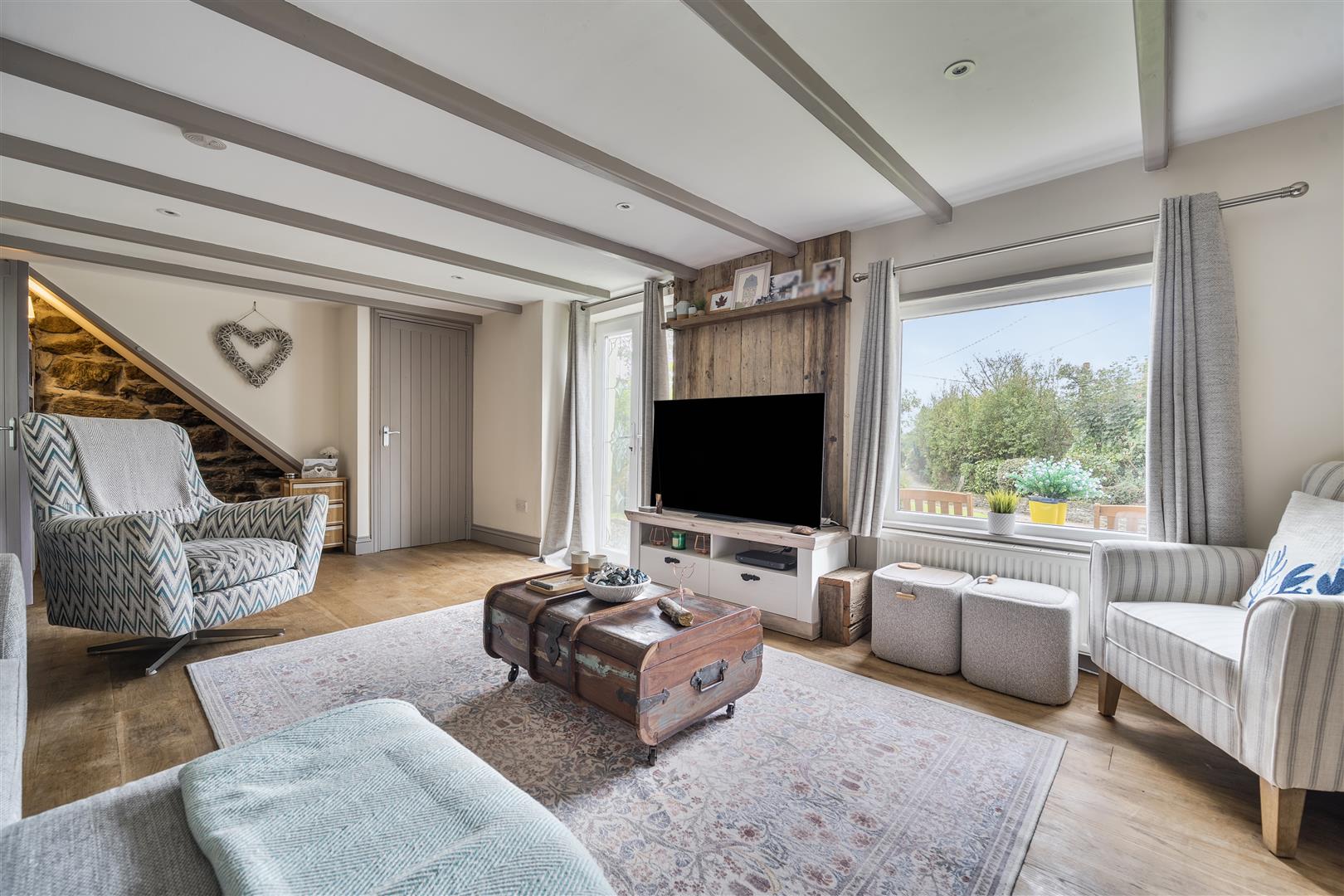 PROPERTY - A side porch provides a useful entrance to the home, offering space for coats and shoes before opening into the heart of the property the kitchen-diner. This impressive room is beautifully light thanks to a feature window and has been fitted with a stylish range of shaker-style units complemented by generous work surfaces. Modern appliances include an electric oven with hob and extractor, integrated dishwasher, and space for an American-style fridge freezer. A charming Duette Heritage Burner adds both character and practicality, serving as an additional cooking option while also heating the property’s hot water. Conveniently positioned next to the kitchen is a utility room with direct access to the rear garden. This space provides plumbing for laundry appliances and houses the hot water Megaflo system. Adjoining the utility is a smartly presented shower room, complete with a double shower, wash basin, W/C, and heated towel rail.