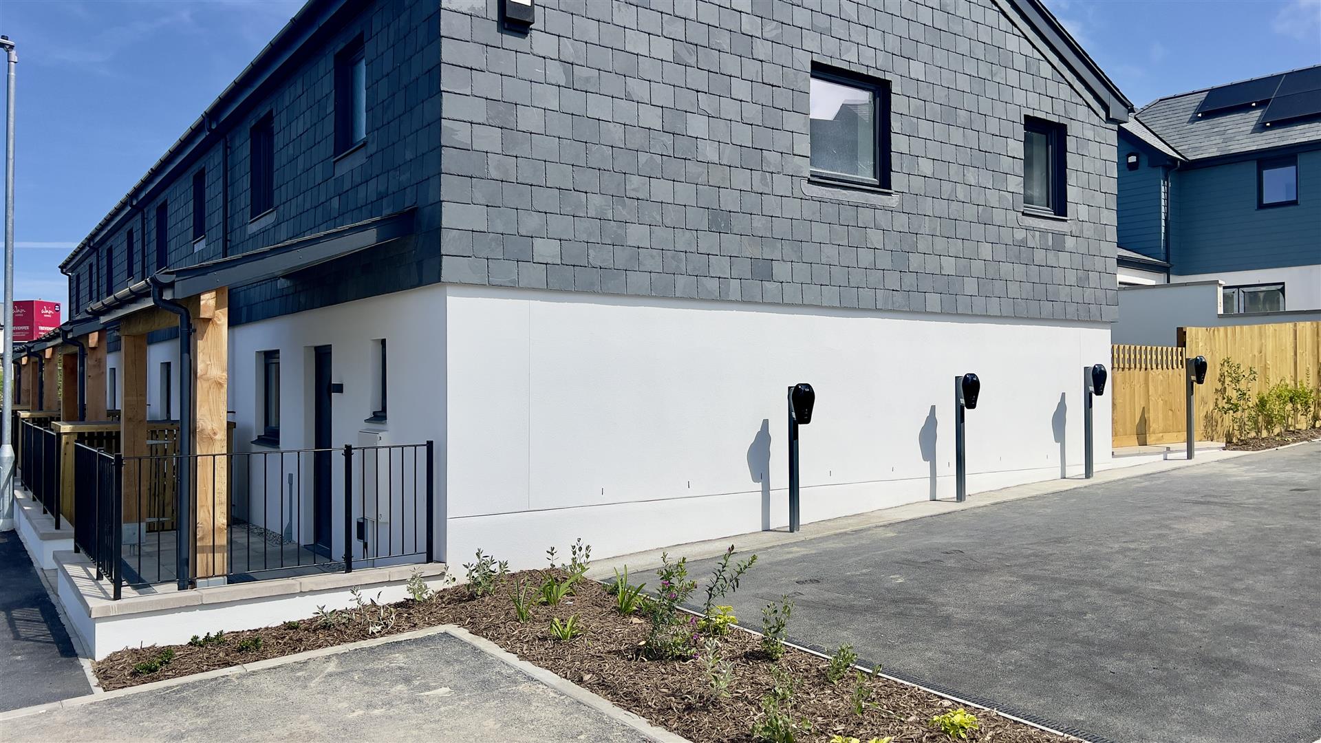 A brand new, end of terrace three bedroom family home in the Trevemper area of Newquay. An open plan living space leading out into the garden that features side access, three bedrooms with built in wardrobes and principal en-suite, a family bathroom and a downstairs WC. Air source heat pump central heating.