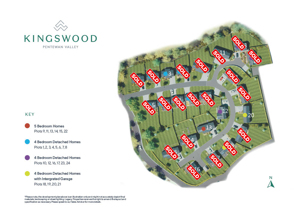 Kingswood is a beautiful new Legacy Properties development of 24 four and five bedroom stunning contemporary family homes set in a private community overlooking the stunning Pentewan Valley.These stunning contemporary detached homes, situated in the beautiful Pentewan Valley on Cornwall's highly sought-after south coast, boast large open-plan living and kitchen spaces, four generously-sized double bedrooms, and a convenient utility room. This makes them the ideal choice for both families and those who love to entertain. You can entertain in the open-plan kitchen and dining area or enjoy a movie night with the family in the separate reception room.