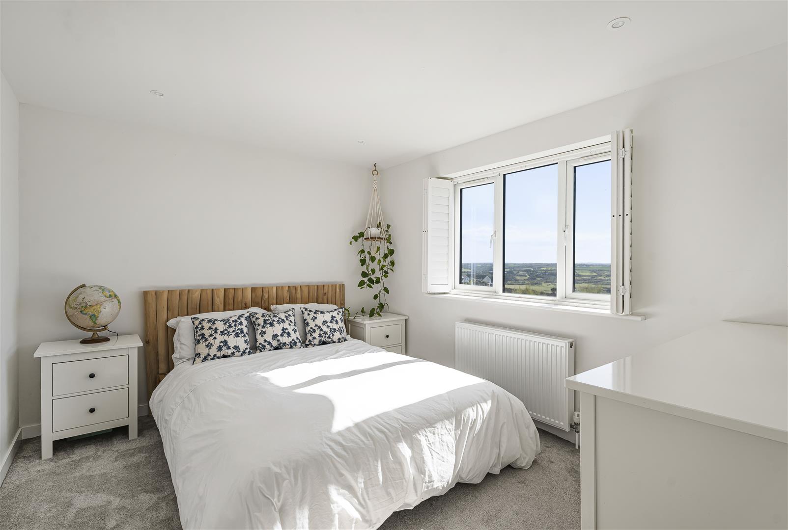 The principal bedroom benefits from a stylish en-suite with a double shower, while three further double bedrooms provide ample family or guest accommodation. Both rear-facing bedrooms command spectacular coastal and countryside views, which only improve from the vantage point being above the rear garden. The front facing also boast sea views back up the coast.