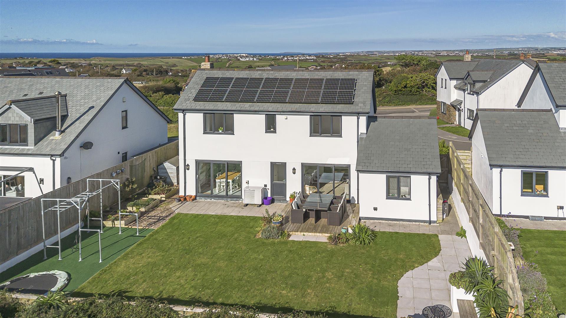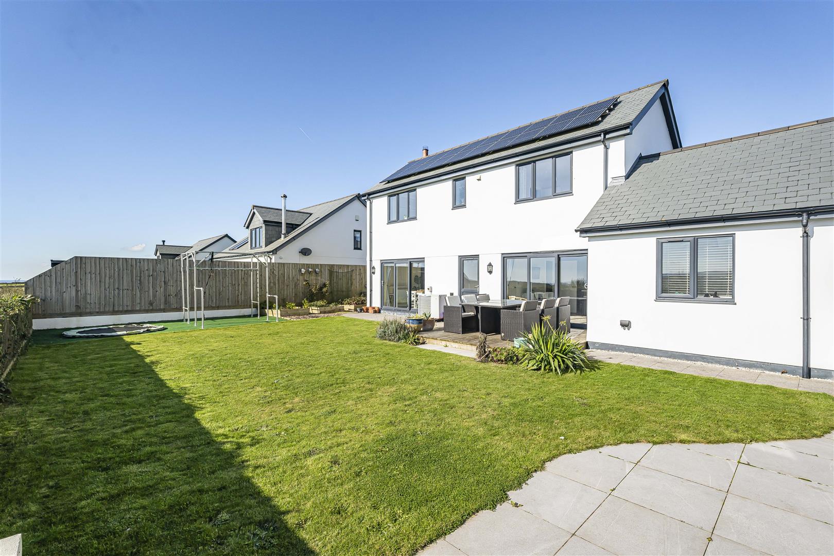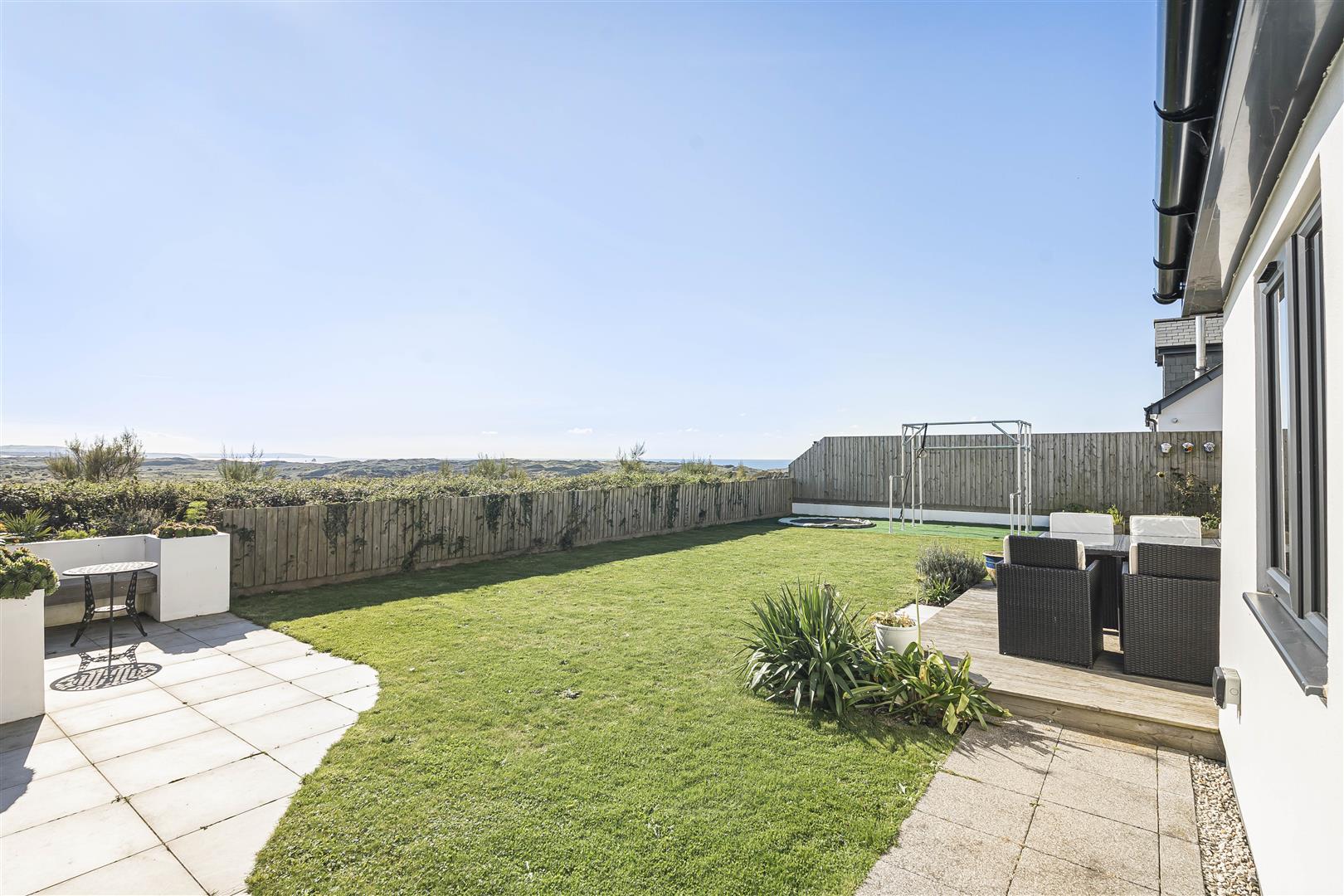 Externally - The rear garden has been thoughtfully landscaped to maximise both enjoyment and outlook. It features a sun deck, porcelain patio, vegetable patch, and a children’s play area laid with artificial grass. The main garden is laid to lawn, with uninterrupted south-westerly views over the North Cornish coast an undeniably impressive spot for summer bbq's and family events or even relaxing in the sun.