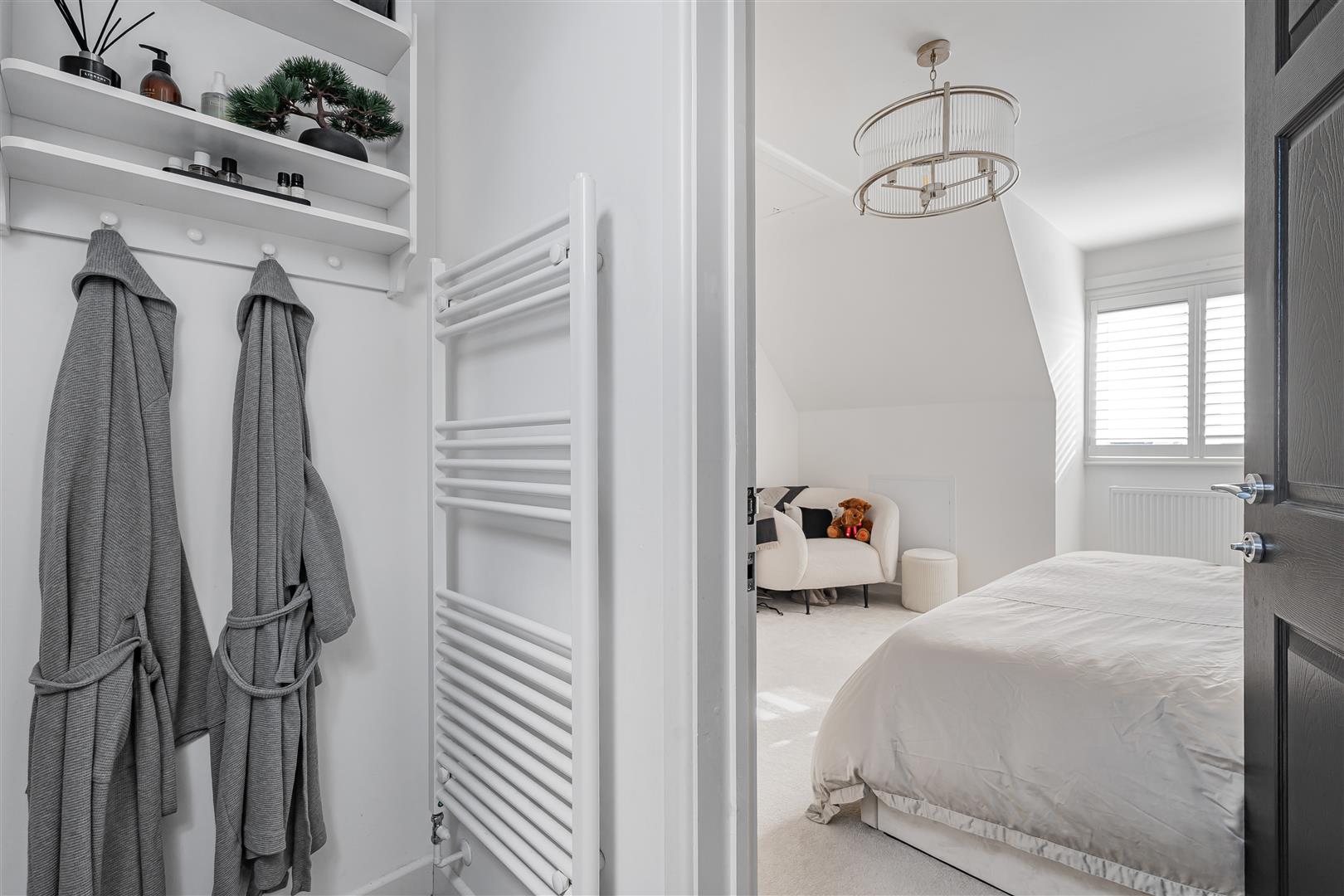 The first floor offers three good-sized bedrooms along with a modern family bathroom. The second floor is dedicated to the impressive master bedroom, which benefits from its own en-suite facilities, providing a private and peaceful retreat.