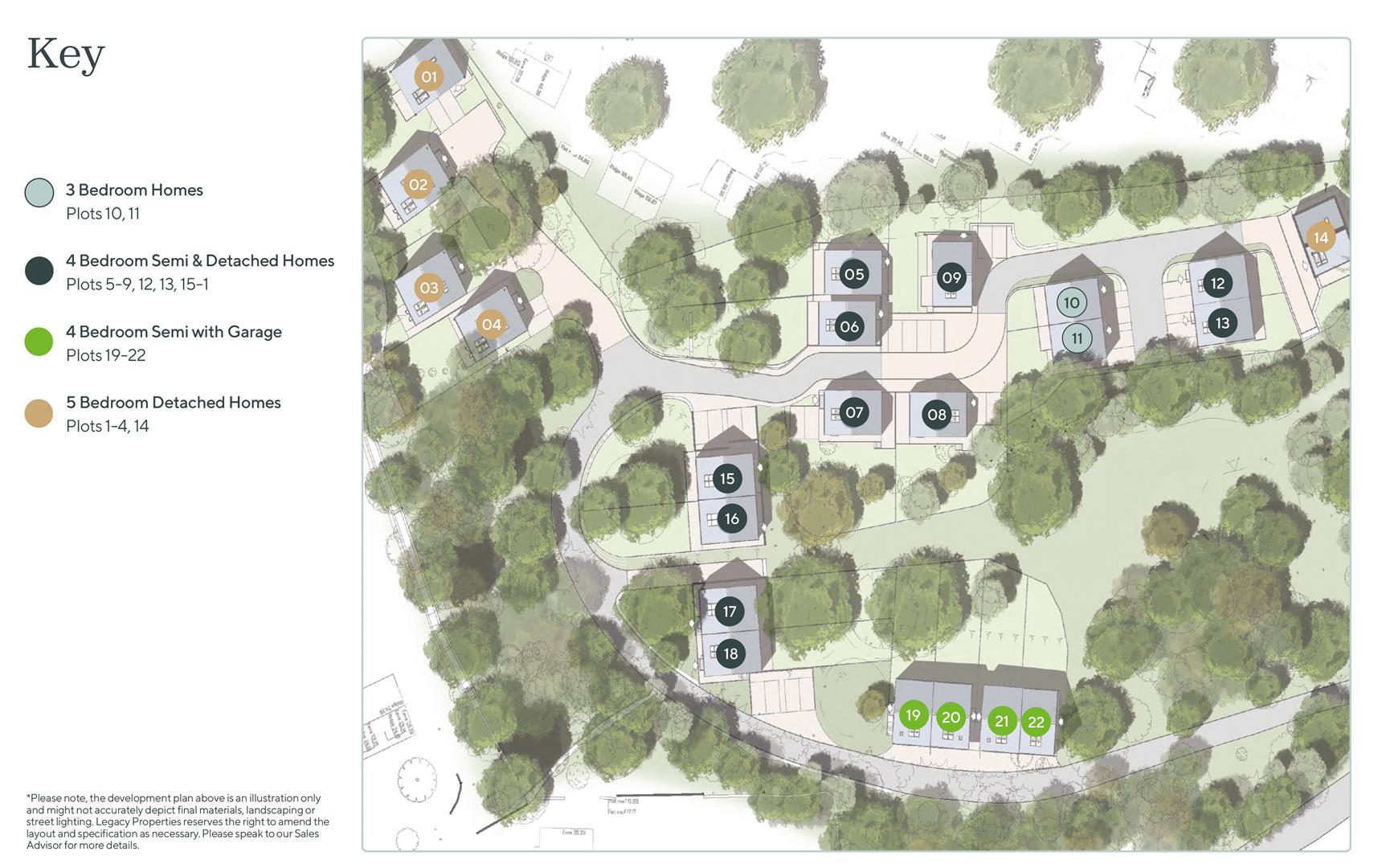 Discover the difference with Legacy Properties NEW spacious family home, nestled in a small woodland setting. Featuring a large principal bedroom with ensuite, three further double bedrooms, and an open-plan kitchen diner opening onto a private lawned garden.