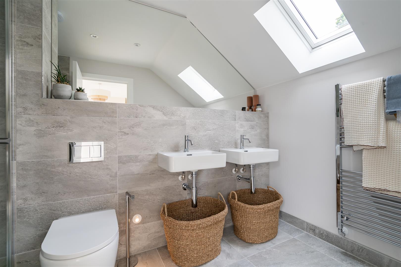 The standout feature is the entire top floor, dedicated to a luxurious principal suite complete with a stylish en suite, double sinks and premium sanitaryware, with woodland views through twin skylights.