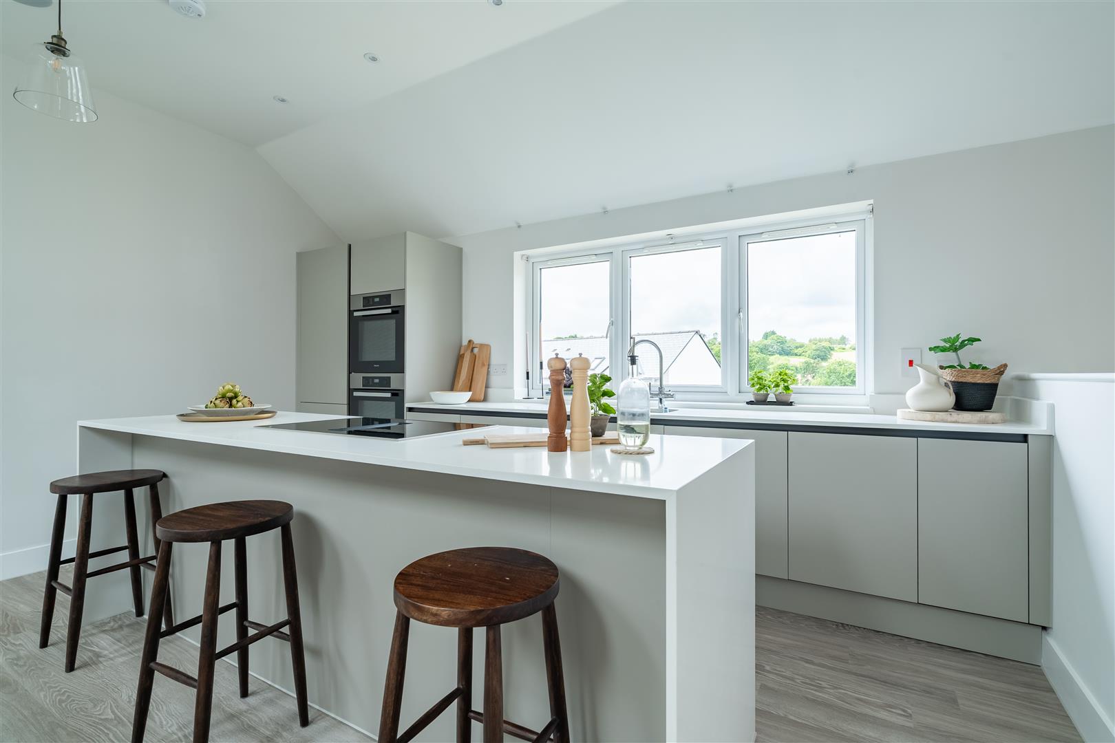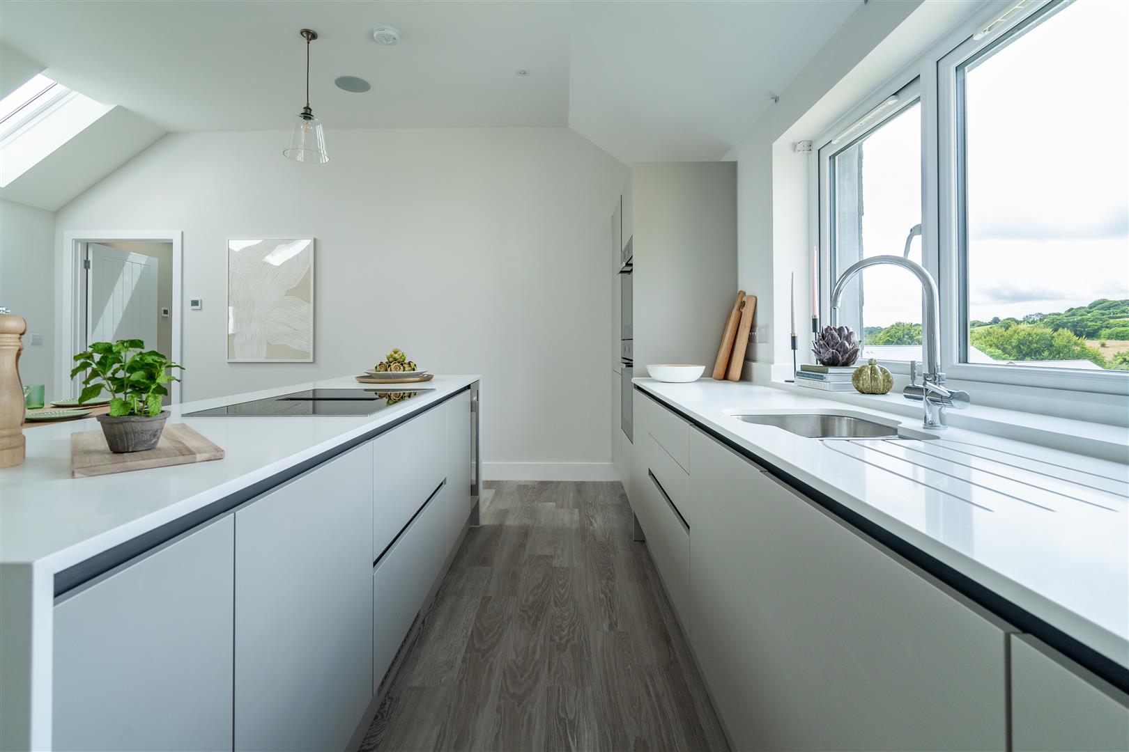 The first floor contains a large open plan kitchen, dining and family living space, with a Juliette balcony opening out to beautiful views, plus master bedroom suite. On the ground floor, there are 3 spacious bedrooms, a large family bathroom, plus a utility room and an integrated garage.