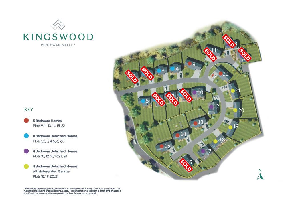 The Development - Kingswood by Legacy Properties is a stunning new development of four and five bedroom luxury homes. Comprising of 24 units in total, Kingswood forms a wonderful community set in the heart of the beautiful Pentewan Valley. Our contemporary exterior and interior home design meets the need for modern family living whilst retaining sensitivity to the natural woodland setting of Trewhiddle.